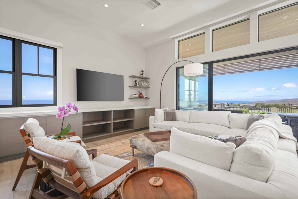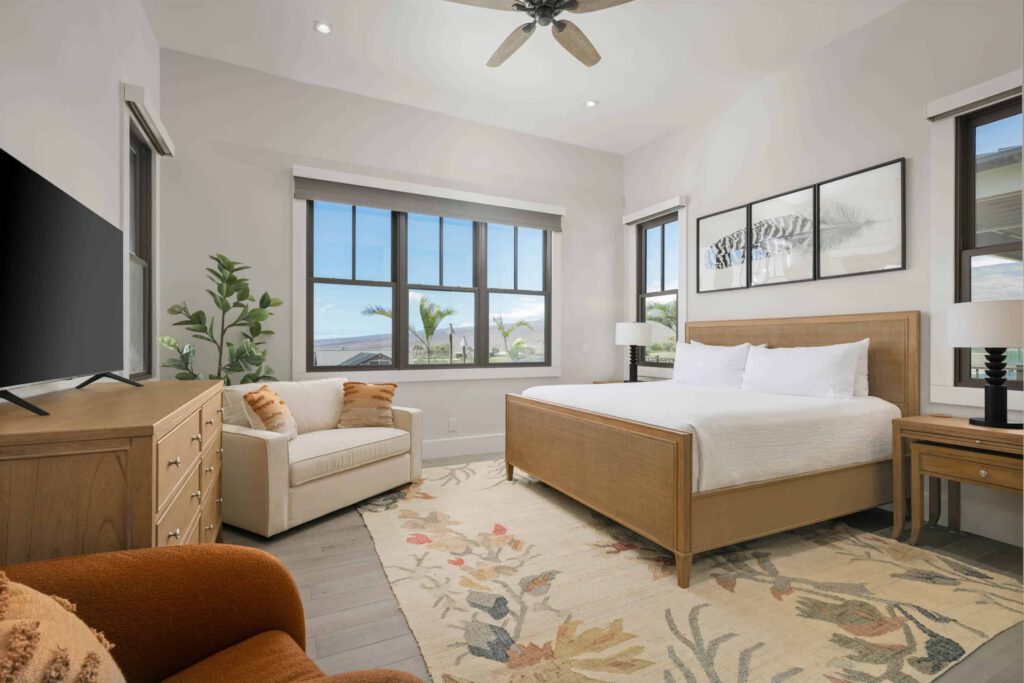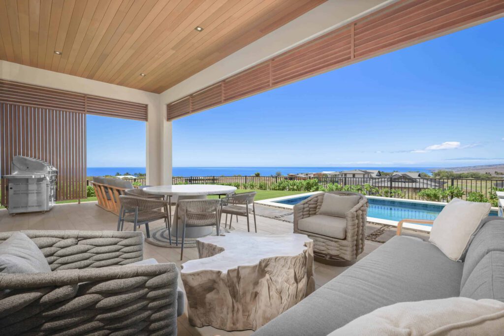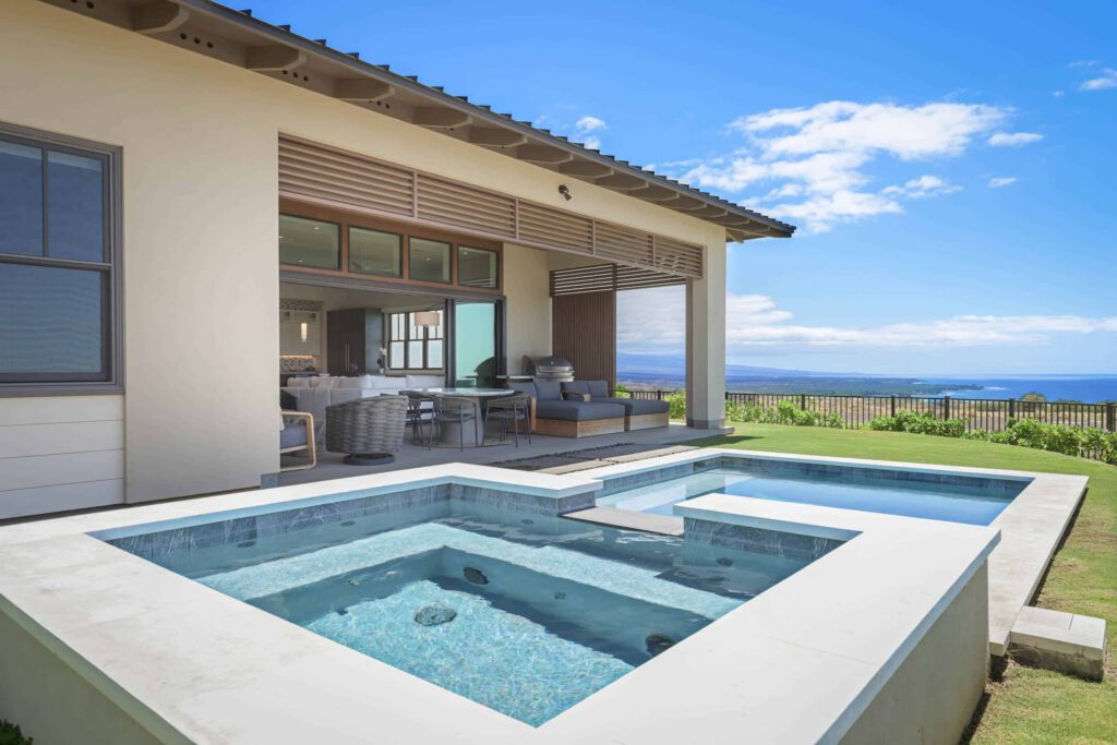 Newly-built and with an ocean view, guests also enjoy exclusive access to The Park at Hapuna Estates, featuring a 60-foot lap pool, waterslide, game room, state-of-the-art fitness center, and daybed pods.